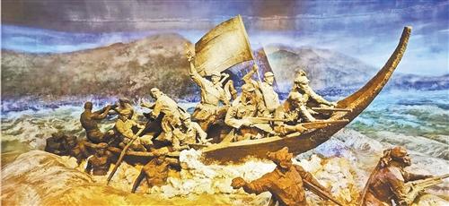 5月的大渡河已进入汛期,河面宽达300多米,河水拍打着密布巨大岩石的河床,发出轰隆隆的怒吼声。25日清晨,在刘伯承、聂荣臻亲自指挥下,红一团一营营长孙继先率领 17名勇士乘坐一只小舟劈波斩浪,冒着枪林弹雨冲向敌阵,成功强渡大渡河,为红军打开一条通向胜利的道路。