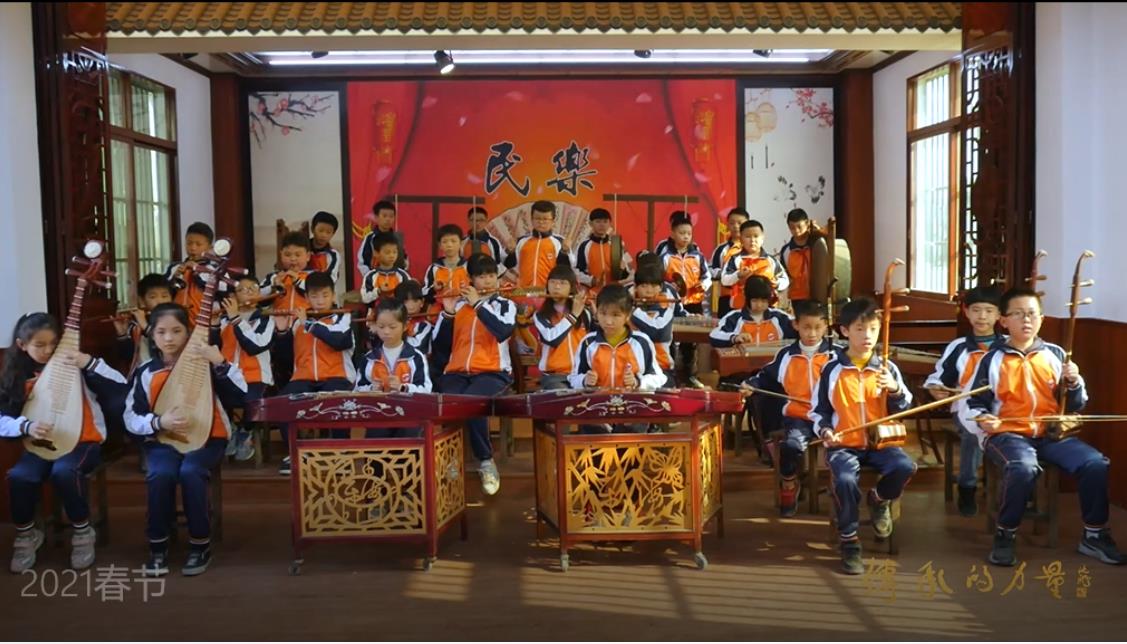 除了插花、绘画、泥陶、剪纸等艺术创作形式,欢度新春佳节总是少不了一份热闹。来自广东省揭阳市榕城区红旗小学的同学们带来当地特有的潮州音乐。红旗小学传承项目负责人林幼芝主任介绍,学校将潮汕本土文化引入校园,让学生了解潮乐、热爱潮乐,使潮州音乐成为学校传承中华优秀文化艺术教育的一大特色、亮点。学校党总支书记、校长孙志勇则鼓励同学们通过艺术传承的方式“记住乡愁,传承乡音”,为“儒艺人生”奠基。