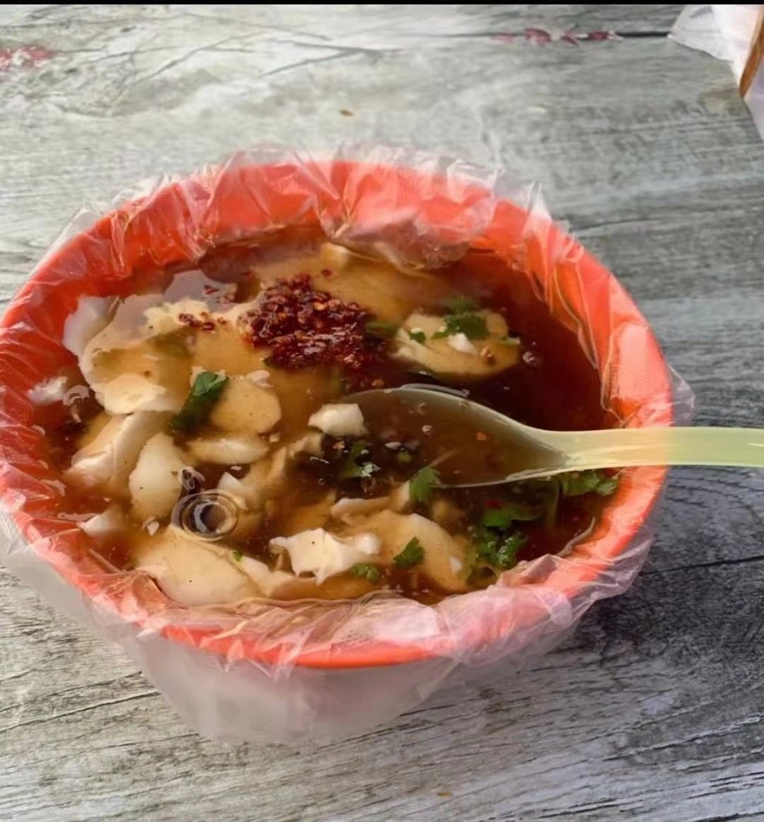 回到家,吃着烧饼,一下子就又将记忆拉回从前。那时候的地八门口的小石子路,门边上似乎总是会支起小棚子,摆上几个小桌子,似乎总在等待工厂工人们的到来。从老轻合金厂下班的工友们,三三两两在桌旁坐下,要上几个麻辣饼,拿着塑料小勺大口大口地喝着豆腐脑,惬意地谈天说地,甩去满身的疲惫,临走时再咕咚咕咚喝上一小瓶荔枝汽水,打一个舒服的饱嗝,再慢慢踱回家。