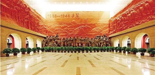 延安革命纪念馆被称为全国爱国主义教育示范基地“一号工程”,是新中国成立后最早建立的革命纪念馆之一。入馆台阶分为3台,寓意党中央在延安领导指挥的土地革命、抗日战争、解放战争3个阶段。纪念馆序厅正前方,一组展现毛泽东、朱德、刘少奇、周恩来、任弼时和工人、农民、军人、知识分子以及国际友人在一起的主体雕塑赫然矗立,左上角标有“1935-1948延安”字样,昭示中共中央和毛泽东在陕北及延安战斗了13个春秋,领导中国革命走向胜利。