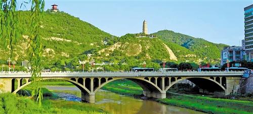山青水碧的宝塔山延河水。经济日报-中国经济网记者 张 毅摄