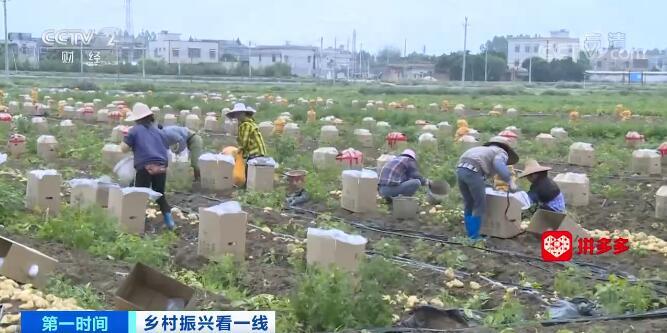 在广东湛江遂溪城月镇石塘村的田间地头,农民正在分拣马铃薯,打包后这些马铃薯将被运往全国各地。