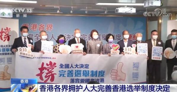 总台记者 刘志敏: 为落实“爱国者治港”原则,香港社会各界的人士来到金钟,共同支持和拥护全国人大关于完善香港特区选举制度的决定。