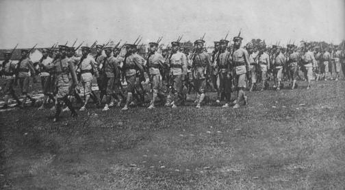 △图为独立团士兵训练时的照片。(独立团强化军事训练,实行“三讲四操”——三讲:上午一次政治课,下午一次军事课,晚上一次列队评讲;四操:早晨一次早操;上下午各一次军事操,黄昏一次体操。)