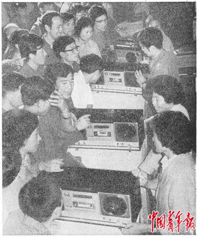 我国市场呈现出一派生机勃勃的景象,市场繁荣、购销两旺。电视机、收录机、照相机等当时的高档消费品在此前几年很少有人问津,当时已成了畅销的“热门货”。南京无线电厂生产的熊猫牌收录机,引起了顾客的极大兴趣。本报记者 王厚林摄(刊发于1982年10月2日中国青年报)