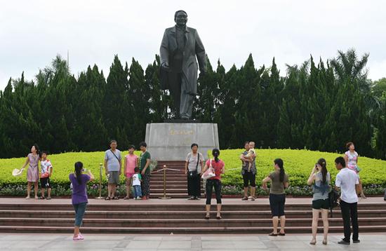 2011年7月13日,深圳莲花山山顶矗立的邓小平塑像前,人们纷纷在这里留影。这里是深圳中心区中轴线北端的最高峰,登山而来的市民和游客络绎不绝,他们来此缅怀一代伟人的丰功伟绩,眺望美丽的深圳市容。赵青/摄