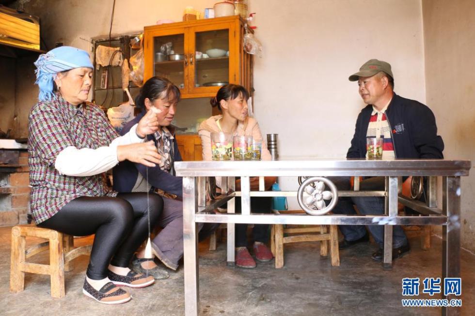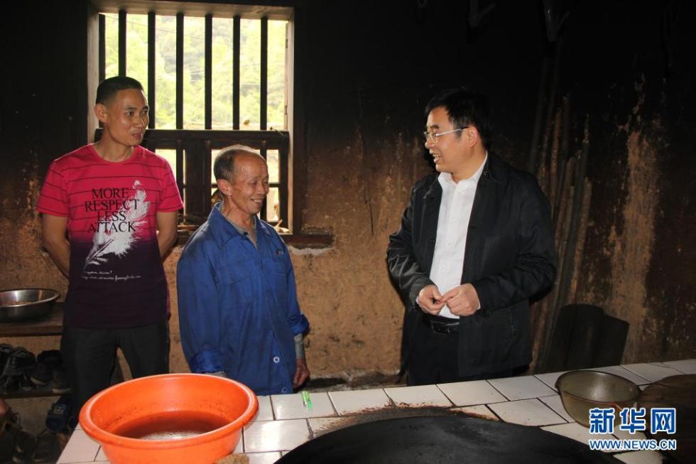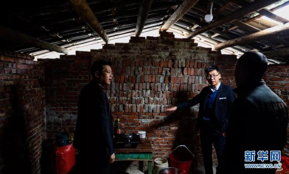 吴应谱(中)在走访贫困户(资料照片)。新华社发