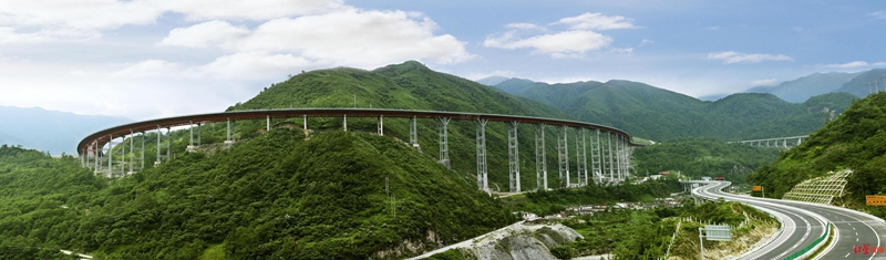 还值得一提的是,全线桥梁多达278座,穿越的地震带最高烈度达9度。腊八斤大桥主桥上部结构采用连续钢构桥,桥梁高度271米,最大墩高182.5米,至今仍为“世界第一高墩”。钢混组合结构桥梁轻质高强,抗震性能高,同时又节约资源。
