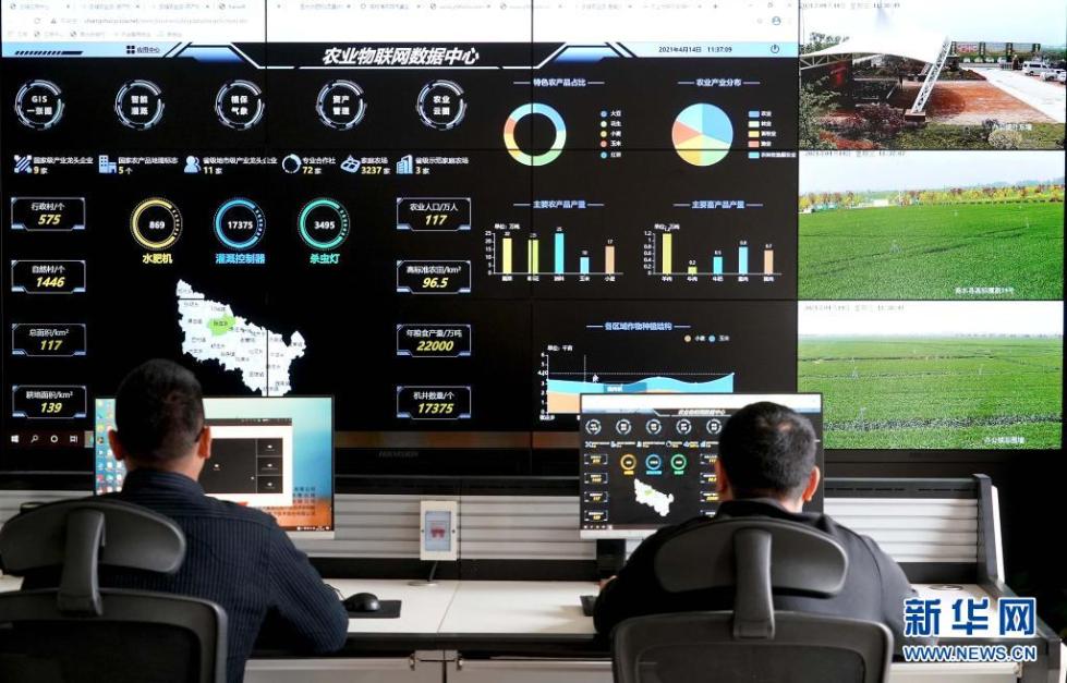 工作人员在河南省商水县农业物联网控制中心内工作(4月14日摄)。 新华社记者 李安 摄