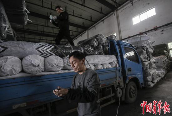 4月10日傍晚6点多,夜幕逐渐落下,位于浙江省绍兴市柯桥区的中国轻纺城周边又进入了一天中最热闹的时候。市场的营业时间即将结束,生意却一刻不停——95后安徽女孩唐燕慧脱下棉服外套,在堆成小山的快递包裹前麻利地誊写着商户发来的运单。她所在的快递公司去年刚刚成立,专为运输纺织品小样而开设,装满样布的包裹当晚寄出,隔天一早就能送达全国多地的服装工厂和设计师手中。