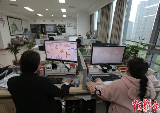 4月12日,浙江省绍兴市柯桥区一家从事纺织品数码印花研发设计的公司,两名员工正在用自家公司研发的软件对印花图案进行分色。