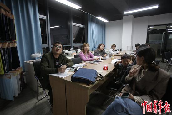 4月13日晚,浙江省绍兴市柯桥区一家专门从事纺织培训的机构,学员们正在学习梭织面料工艺课程。这里的学员大多是纺织市场的经营户,利用晚上下班后的时间“充电”,也有刚刚踏出校园,即将接触家族布料生意的“布二代”。