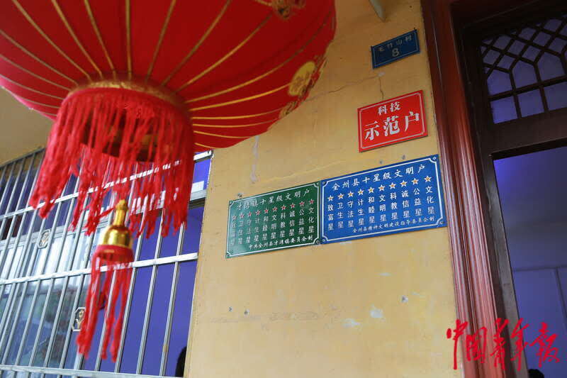 4月26日,广西桂林全州县才湾镇毛竹山村,罗玲玲家门前挂着“科技示范户”“全州县十星级文明户”等荣誉铭牌。刚开始种提子时,她家种得又多又好,由此评上了村里的“科技示范户”。罗玲玲说,以后打算开个农家乐,吸引更多游客来村里旅游,也提高家庭收入。中青报·中青网记者 曲俊燕/摄