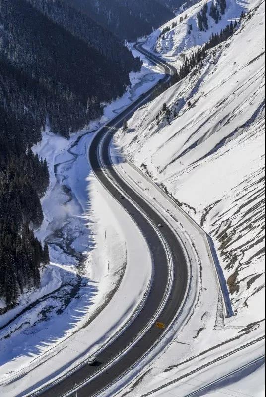 ▲穿行在天山间的连霍高速果子沟段。图据 新华社