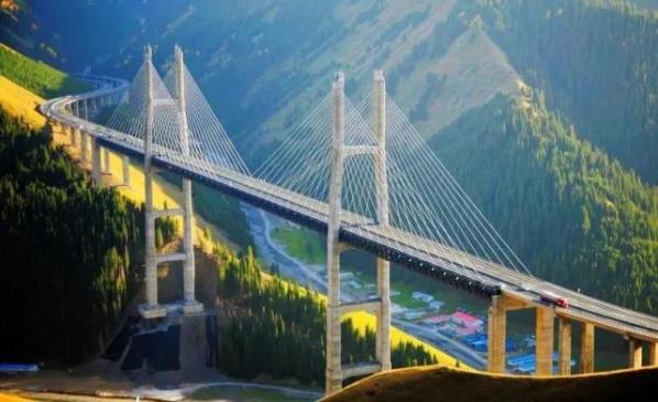 2011年9月30日,果子沟大桥建成通车。果子沟双塔双索面钢桁梁斜拉桥,是自治区公路第一座斜拉桥,也是国内第一座公路双塔双索面钢桁梁斜拉桥。