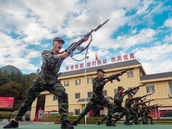 2020年11月18日,武警井冈山中队官兵进行刺杀训练。吴伟/摄