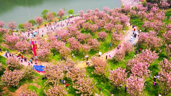 2018年4月,萍乡市安源区城郊管委会略下村首届“阳光花海”樱花文化旅游节开幕。何凯/摄
