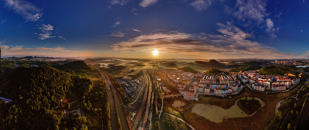 贵州贵阳贵安新区月亮湖晚霞。贵安新区是国务院批准设立的第八个国家级新区,成立于2014年,是全国乃至全球大数据发展的重要策源地和创新试验田,享有“中国数谷”的美誉,还是全国唯一担负生态文明示范区使命的国家级新区,拥有世界遗产和国家级风景名胜区22处。(来源:IC)