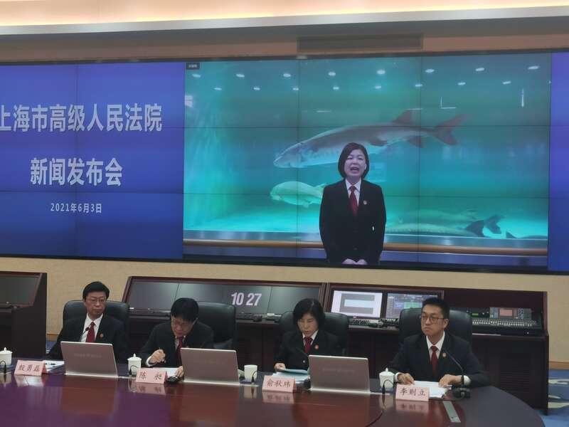 图为上海高院发布会现场连线上海崇明法院