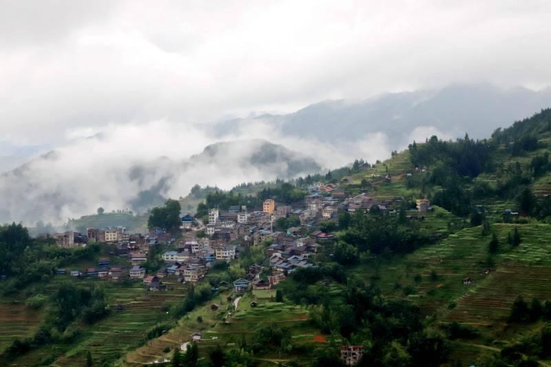 云雾缭绕的融水苗族自治县红水乡芝东村。融水苗族自治县融媒体中心供图