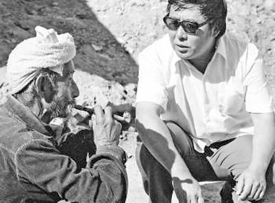 路遥(右)在陕北农村走访。
