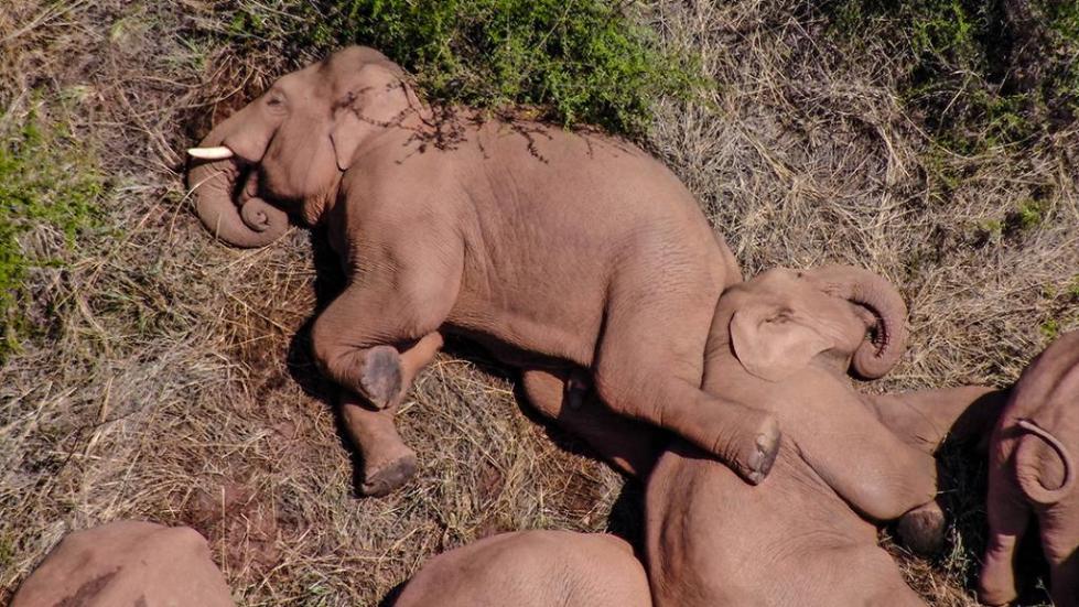 这组象群睡觉的照片