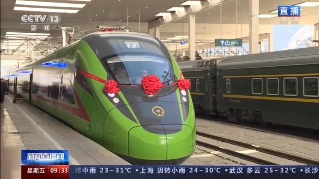 总台央视记者 郑连凯: 我们来看看这趟车,它是一列被我们称作“绿巨人”的时速160公里的复兴号动车组列车,车头上有时速160和复兴号的标志,这是复兴号首次开上青藏高原,至此复兴号已经覆盖内地31个省区市。