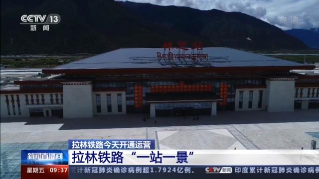 总台央视记者 郑连凯: 我现在就在拉萨火车站的1号站台,站在这里不由得想起那首歌《坐着火车去拉萨》。我们看到拉林铁路的首发车,已经停靠在我身边,今天上午10:18将从这里开出前往林芝。