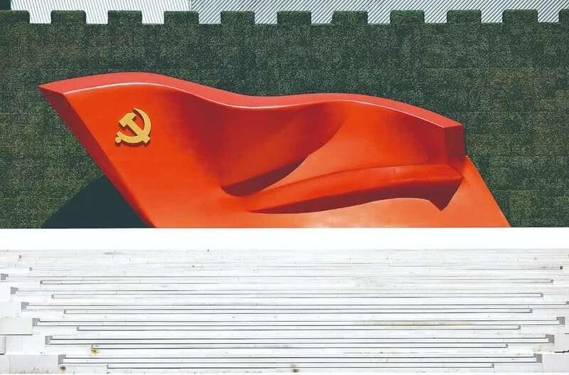中国青年报客户端讯(中青报·中青网记者吴晓东)“这样一面迎风招展、气势如虹的党旗,象征着中国共产党历经百年伟大历程而意气风发的气概。”大型雕塑《旗帜》的创作者、中国美术馆馆长吴为山说,一百年后,以至于更遥远的未来,这面伟大的“旗帜”依然高高飘扬。 在中国共产党历史展览馆西侧广场,高7.1米、长21米的大型雕塑《旗帜》伫立在1米高的基座上。“将具象旗帜转换为曲与直的变奏,通过造型语言象征中国共产党百年艰难曲折的革命历程,更形象展现了无数共产党人高擎旗帜为理想而不懈奋斗的精神。”吴为山说,鲜红的党旗是血染的风采,走近这面旗帜,参观者会被这一片大红色感动。