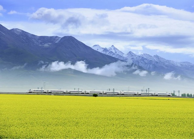 ▲2014年世界第一条高原高速铁路——兰新高铁