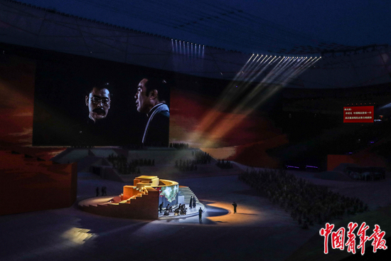 6月28日,北京国家体育场,庆祝中国共产党成立100周年大型文艺演出现场,盛典仪式后的第一个节目戏剧与舞蹈《破晓》,再现了陈独秀、李大钊“陈李建党”的经典场景。中青报·中青网记者 赵迪/摄