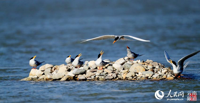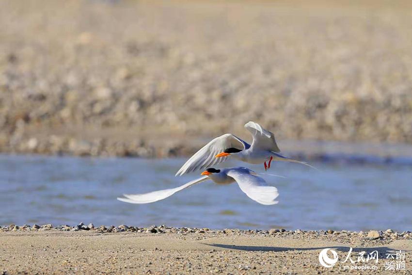 “从二级升级到一级,说明保护力度还得加大。”左常盛说,河燕鸥为中型水禽,体长37-43厘米,主要栖息在河流、湖泊等地方,筑巢于沙洲上,以小鱼为主食,也食蝌蚪、虾等食物。它每年3-5月为孵卵期,4-6月为育雏期,在盈江的繁殖期约为190天。