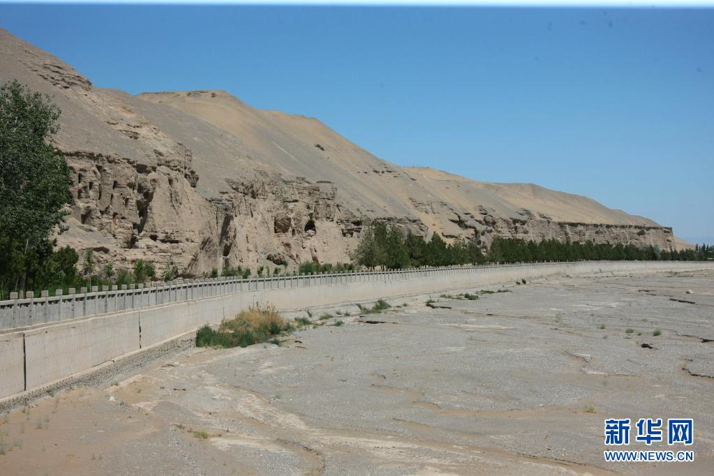这是敦煌莫高窟北区及河边防洪堤(7月6日摄)。新华社记者 刘诗平 摄