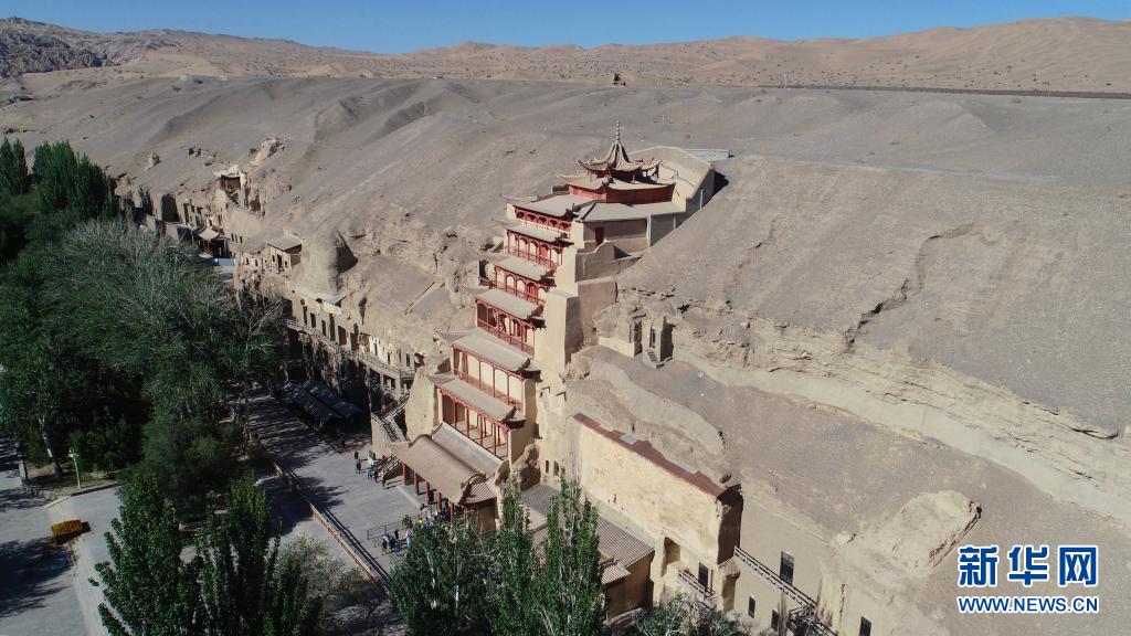 这是敦煌莫高窟全景(7月6日摄,无人机照片)。新华社记者 刘诗平 摄