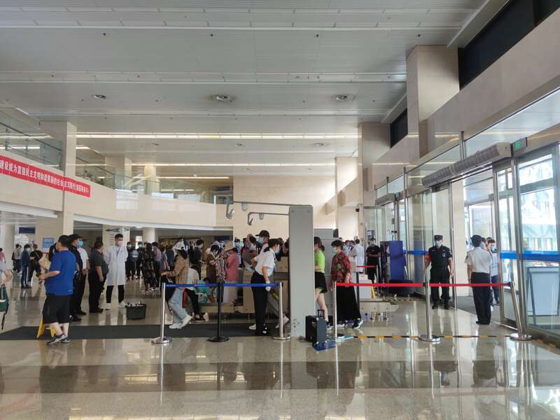 7月14日,首都医科大学附属北京天坛医院,所有人员进入医院均需进行安检。中青报·中青网记者 胡宁/摄