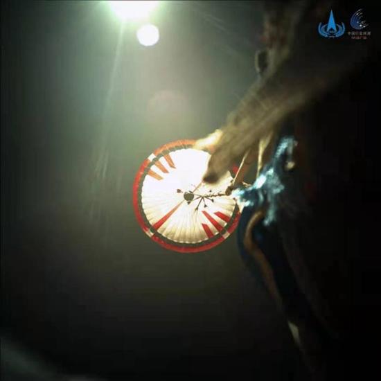 本报北京7月15日电(中青报·中青网记者 邱晨辉)今天,国家航天局对外发布最新火星影像:7月12日,“祝融号”火星车在南向巡视探测途中,路过降落伞与背罩组合体附近,利用导航地形相机对组合体进行成像,图中可见降落伞全貌和经气动烧蚀后的完整背罩结构,背罩上的姿控发动机导流孔清晰可辨,成像时火星车距离背罩约30米,距离着陆点约350米。