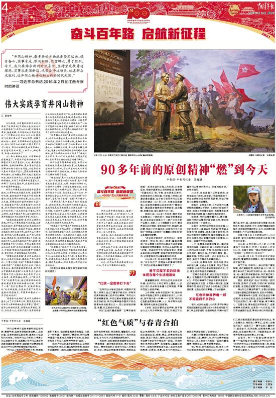 “在井冈山斗争的实践中,中国共产党和人民军队经过了磨炼不断成长,孕育形成具有原创意义的井冈山精神。”井冈山大学原特聘教授、井冈山革命根据地史研究专家陈钢说,井冈山精神是中国共产党优良革命传统的源头之一,可以找到很多鲜活、丰富、扎实的史料印证。