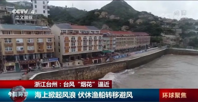 随着今年第六号台风“烟花”逐步逼近,浙江台州沿海昨天(22日)已经掀起大风大浪。为了确保安全,进入伏休的渔船陆续入港避风。