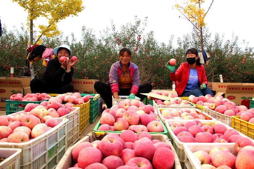 黄陵县隆坊镇上官村苹果喜获丰收。(照片由黄陵县县委办公室提供)