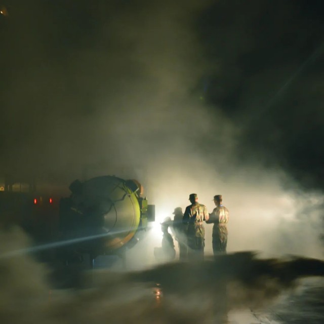 火箭军某导弹旅发射分队组织夜间训练。(黄建建 摄)