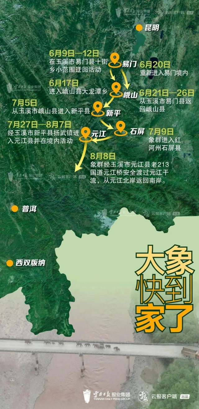 所以让象群返回元江以南,一直被专家认为是此次帮助野象回到栖息地的关键。