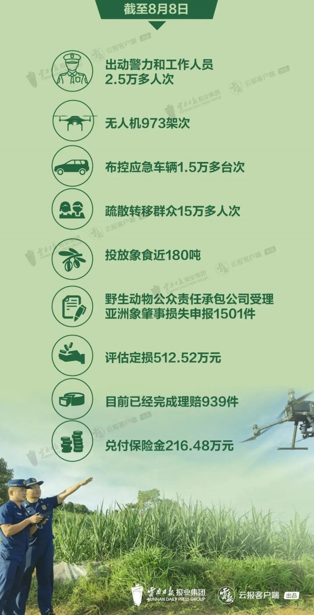 累计赔付亚洲象肇事损失1.73亿元。