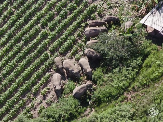 6月26日前后,象群在峨山县富良棚乡活动觅食。