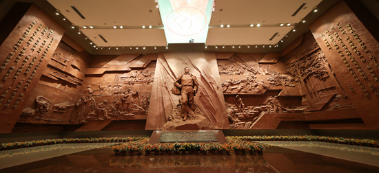 河南省兰考县展览馆序厅内,焦裕禄铜像巍然屹立。 李宇翔/摄