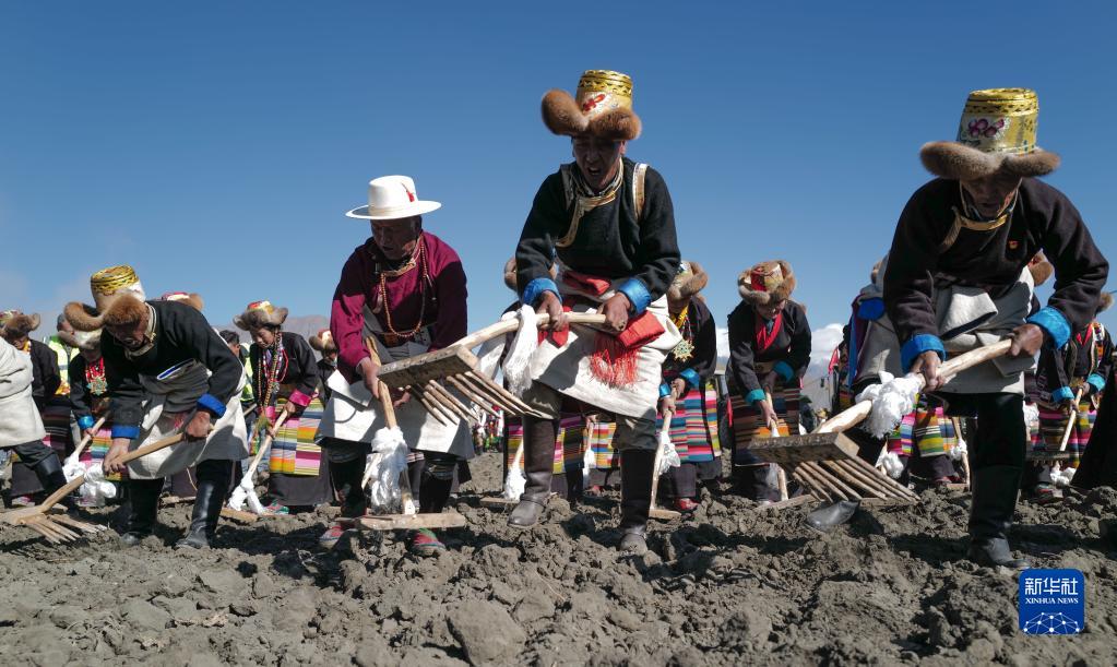 西藏山南市乃东区克松社区居民参加春耕仪式(3月16日摄)。新华社记者 孙瑞博 摄