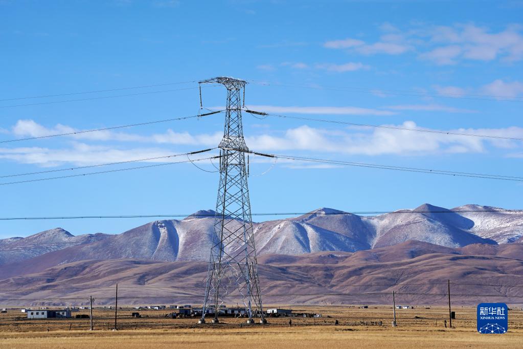 这是在西藏阿里地区普兰县拍摄的西藏阿里与藏中电网联网工程输电铁塔(2020年11月29日摄)。新华社记者 詹彦 摄