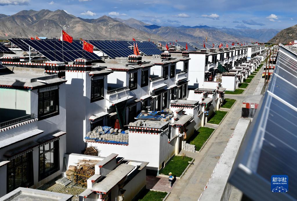 西藏日喀则市江当乡易地搬迁贫困户安置房“光伏小镇”居民小区一角(2018年9月5日摄)。新华社记者 张汝锋 摄