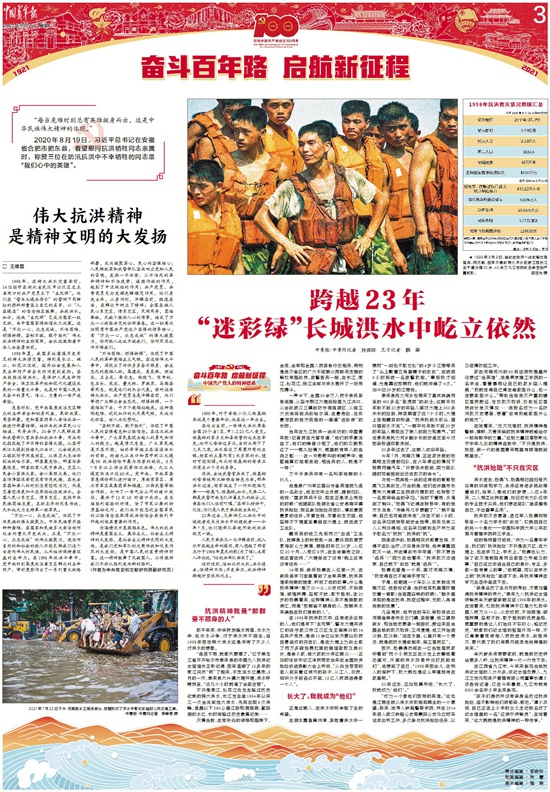 彼时彼刻,恰如此时此刻。洪水退去,但精神不倒;历史奔流,抗洪精神跨越时空依然屹立。
