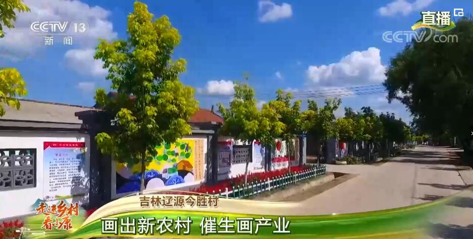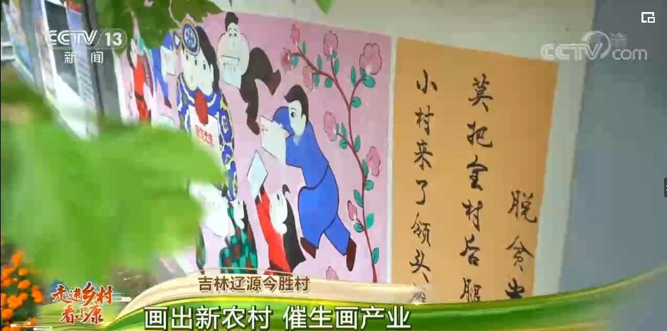 总台记者 文彬: 我现在位于吉林省辽源市东丰县今胜村,这里的很多农民都会画画。比如说我面前院墙上的这幅画,就是当地农民创作的一幅秋收的场景,旁边还配有打油诗,诗名是《扶贫项目苹果丰收》——惠民政策顶呱呱,精准扶贫到俺家,山坡栽上摇钱树,穷根拔掉有钱花。在今胜村,像这样的墙画共有188块,总长度1048米。“拿起锄头种田,放下锄头画画”已经成为这里很多农民的习惯,墙上的一幅幅画作都是农民亲手绘制的,讲述的就是这个小山村这些年发生在农民身边的故事,农民们用画笔栩栩如生地把这些真实的故事画在了墙上,呈现了出来。