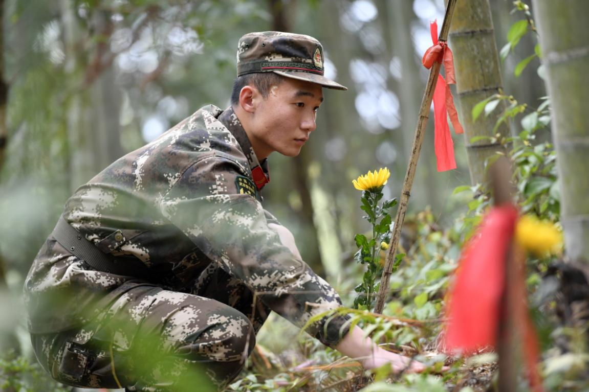 武警福建省总队南平支队执勤三大队官兵祭扫张山头红军墓群